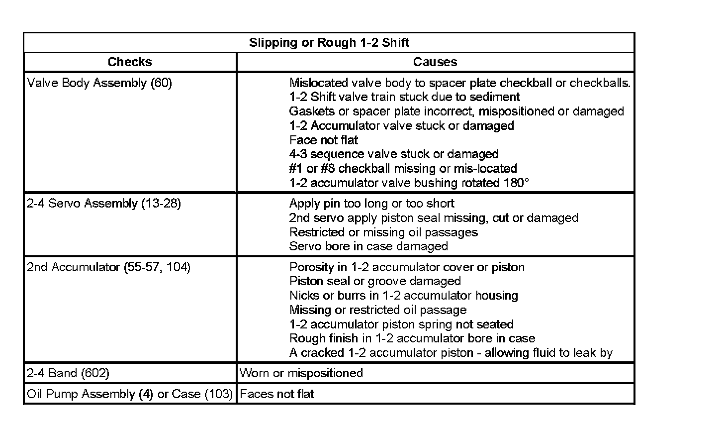 Slipping or Harsh 1-2 Shift: