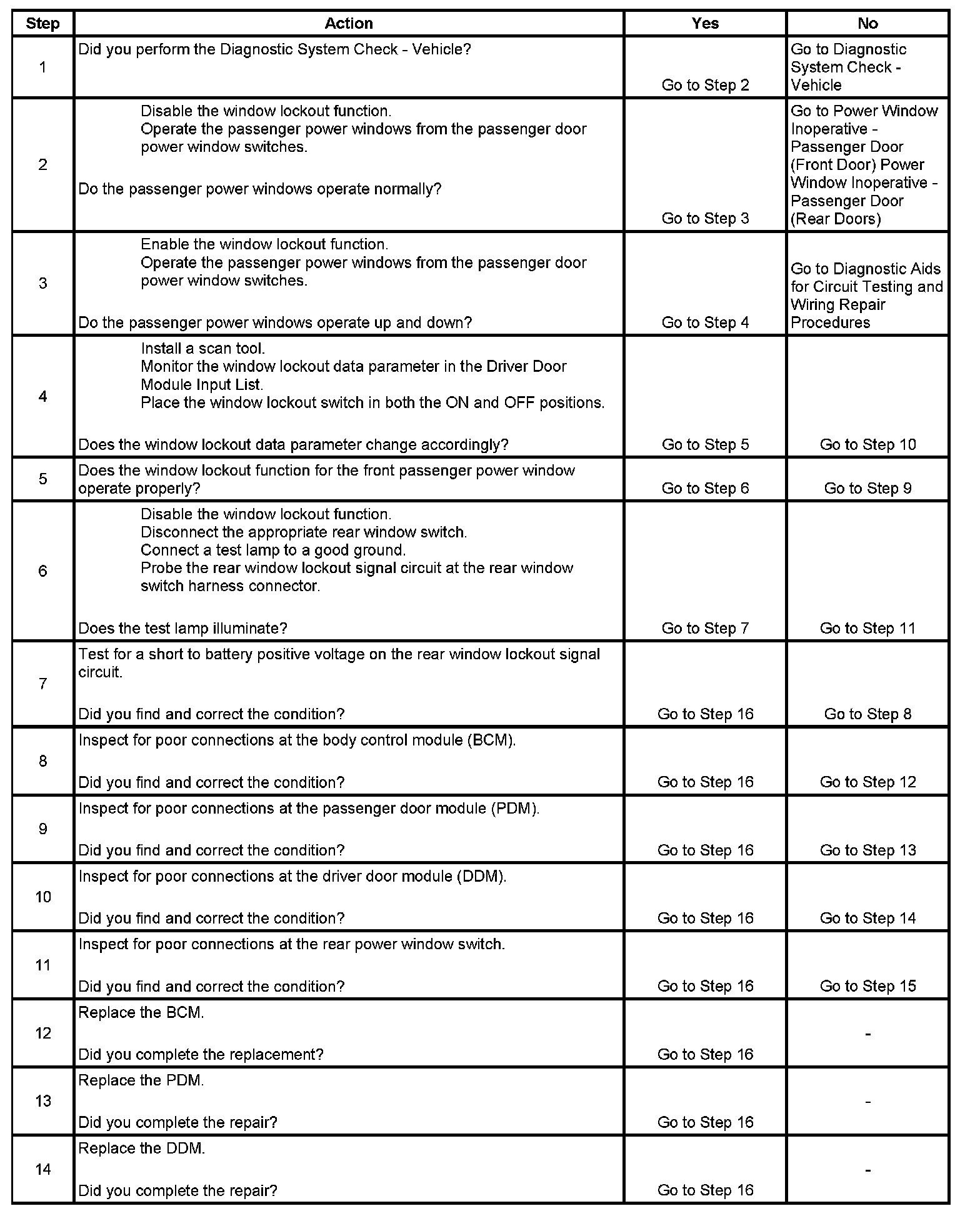 Power Window Lockout Function Inoperative