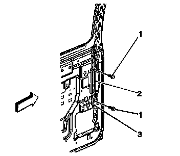4. Remove the 2 fasteners (1) retaining the run channel to the door.