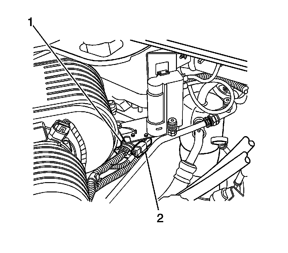 2. Disconnect the electrical connectors (1,2) from the heated washer pump.