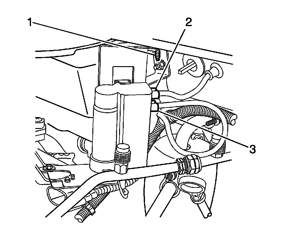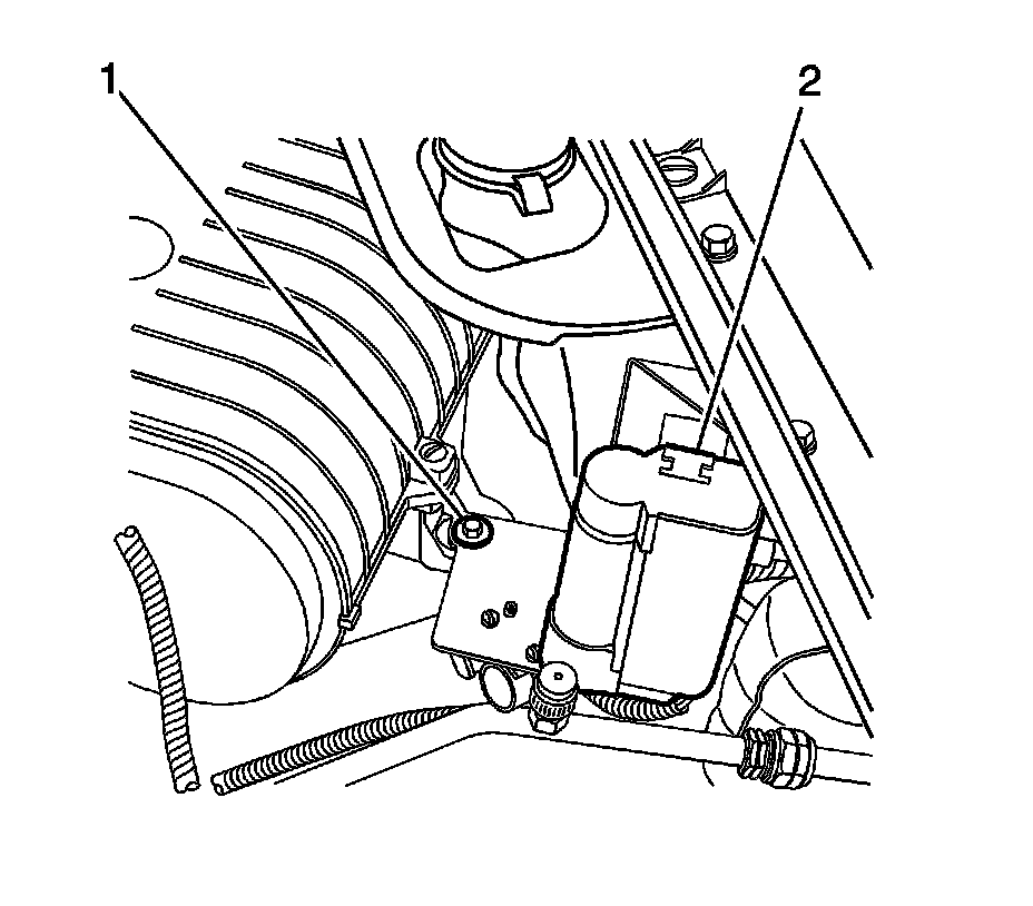4. Remove the upper plenum J nut (1) securing the heated washer pump mounting bracket to the plenum flange.
