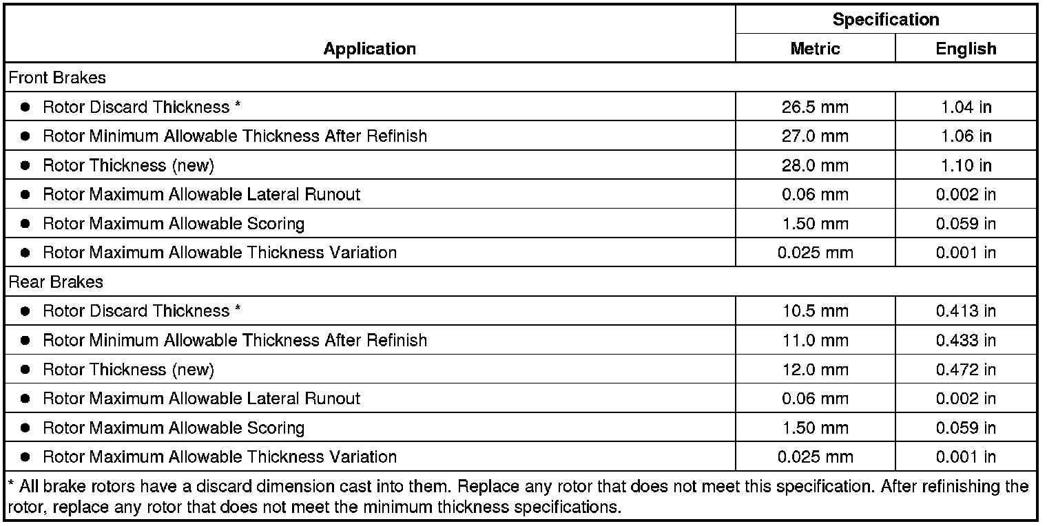 Disc Brake Component Specifications