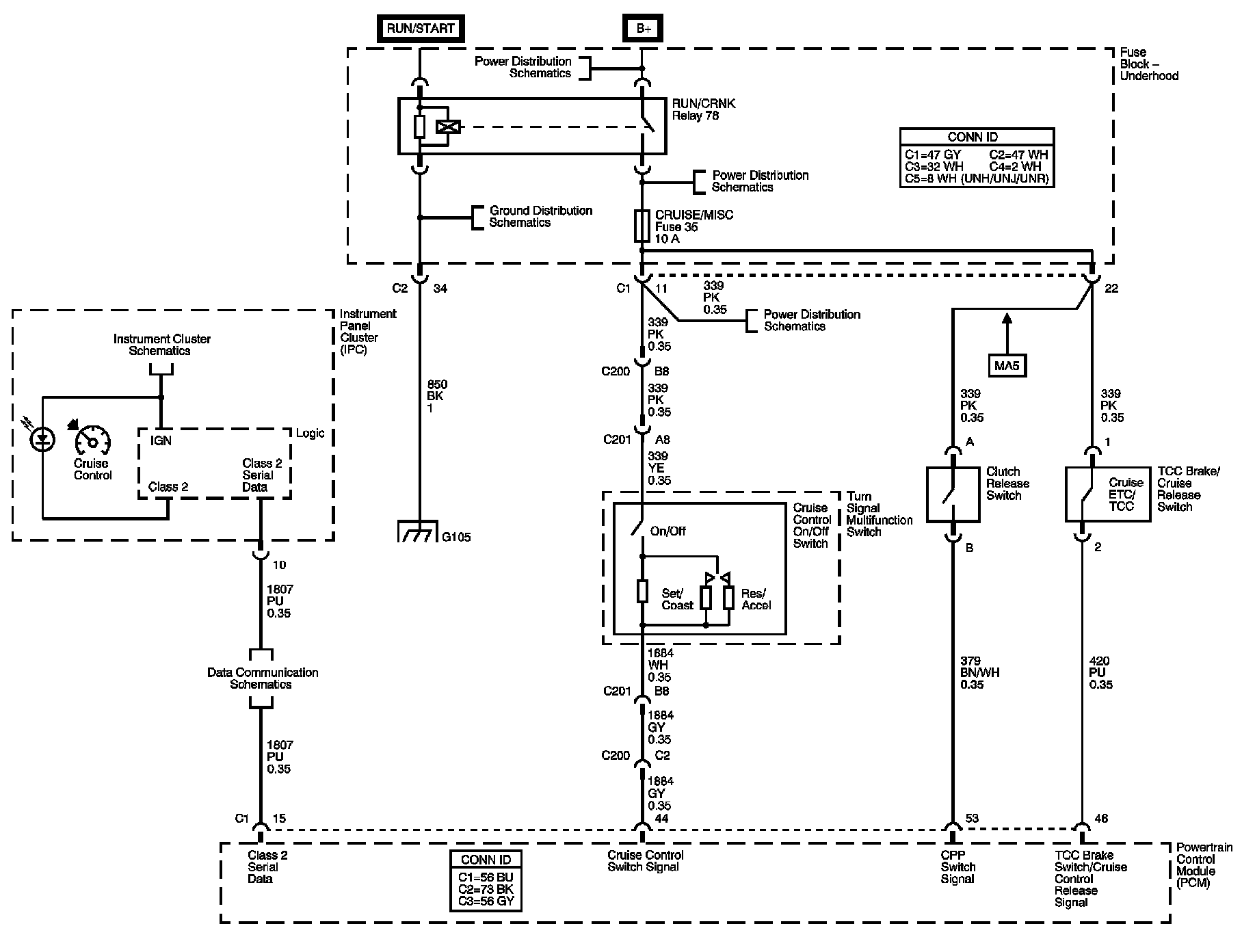 The locations for the Connectors, Grounds, Splices, and Grommets shown within these diagrams can be found via their numbers at Vehicle Locations.