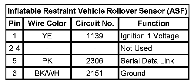 Inflatable Restraint Vehicle Rollover Sensor (ASF)