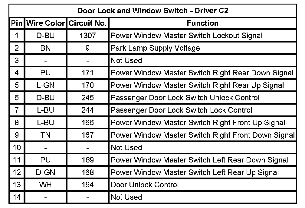Door Lock and Window Switch - Driver C1