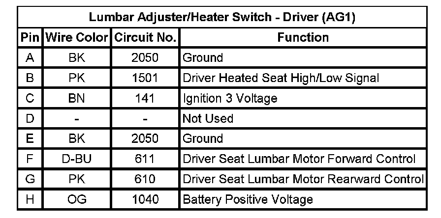 Lumbar Adjuster/Heater Switch - Driver (AG1)