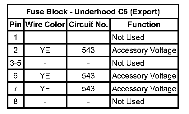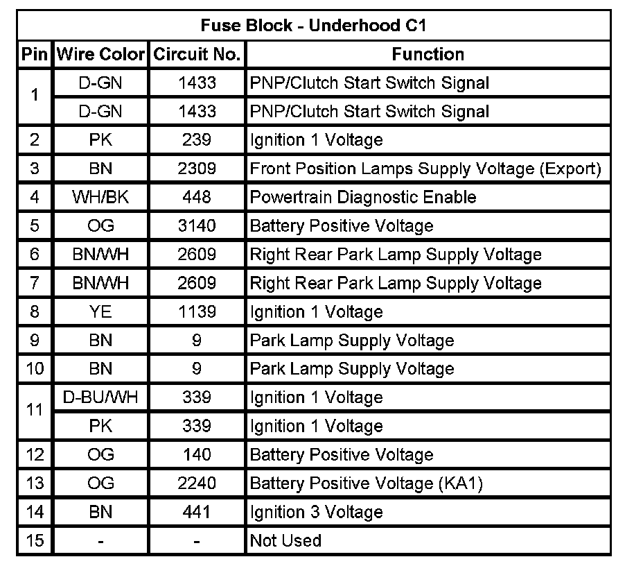 Fuse Block - Underhood C1 (Pin 1 To 15):