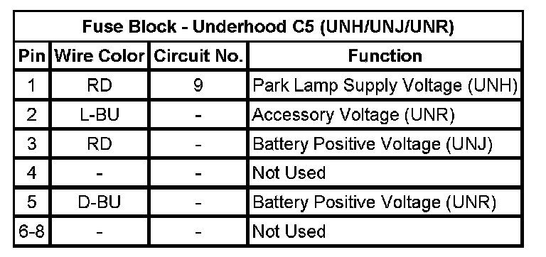 Fuse Block - Underhood C5 (UNH/UNJ/UNR)