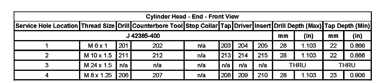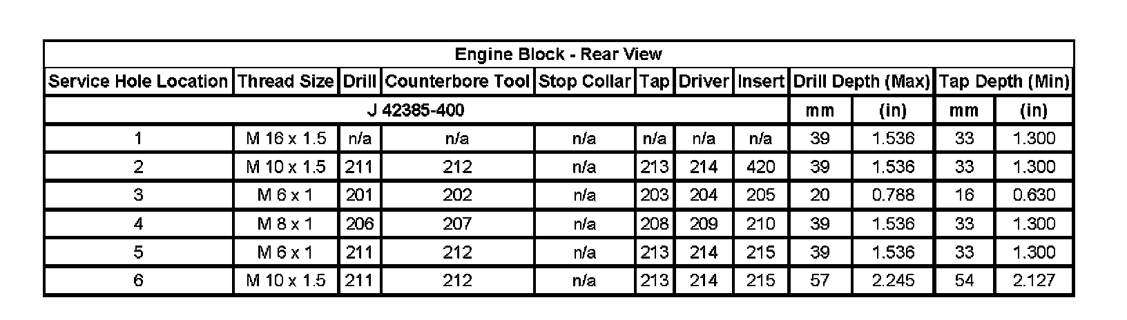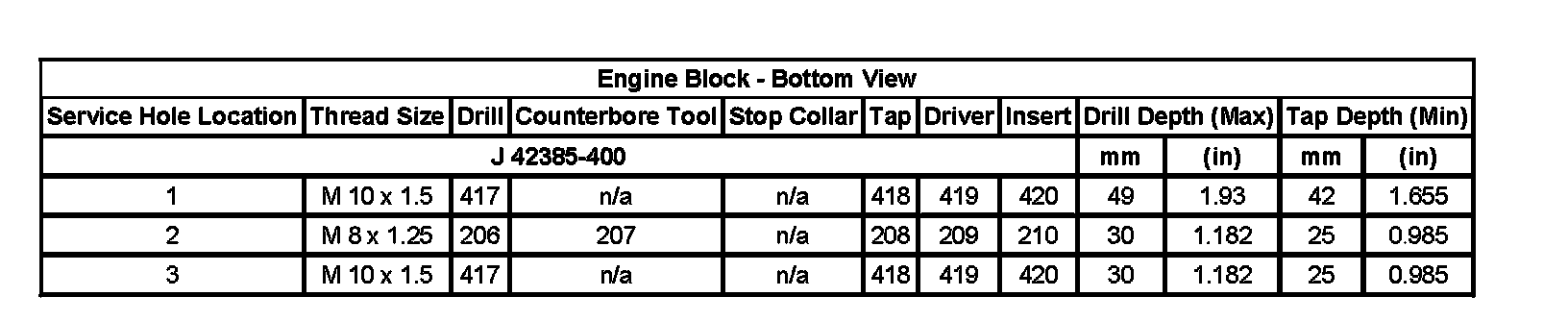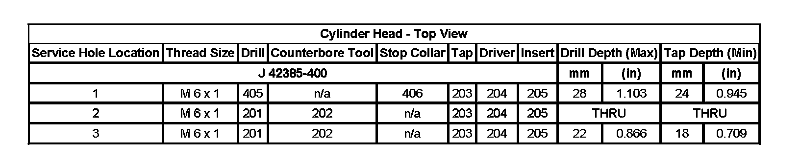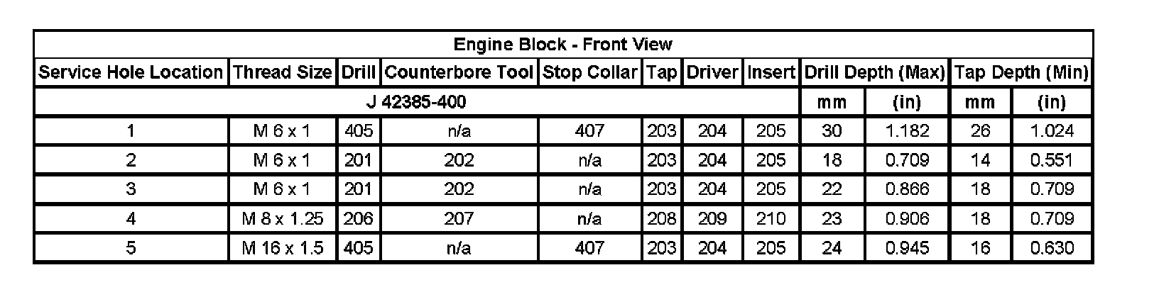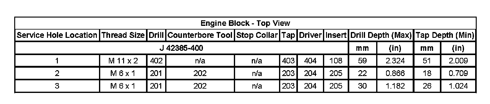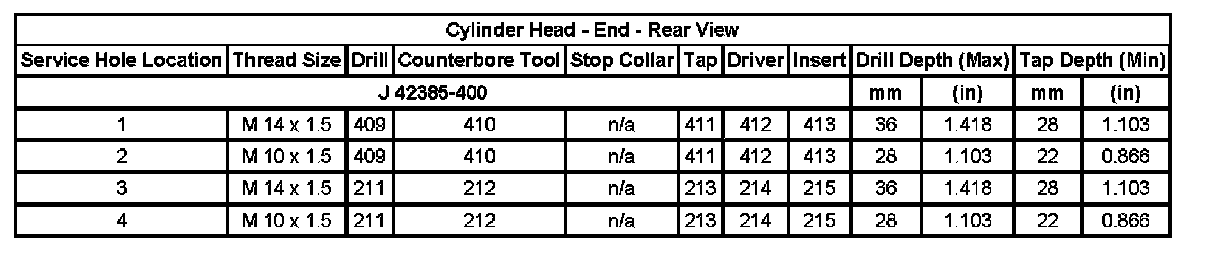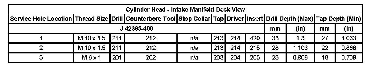 Thread Repair SpecificationsEngine Block - Top View: