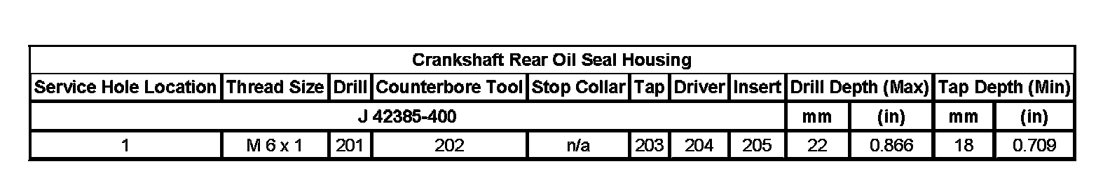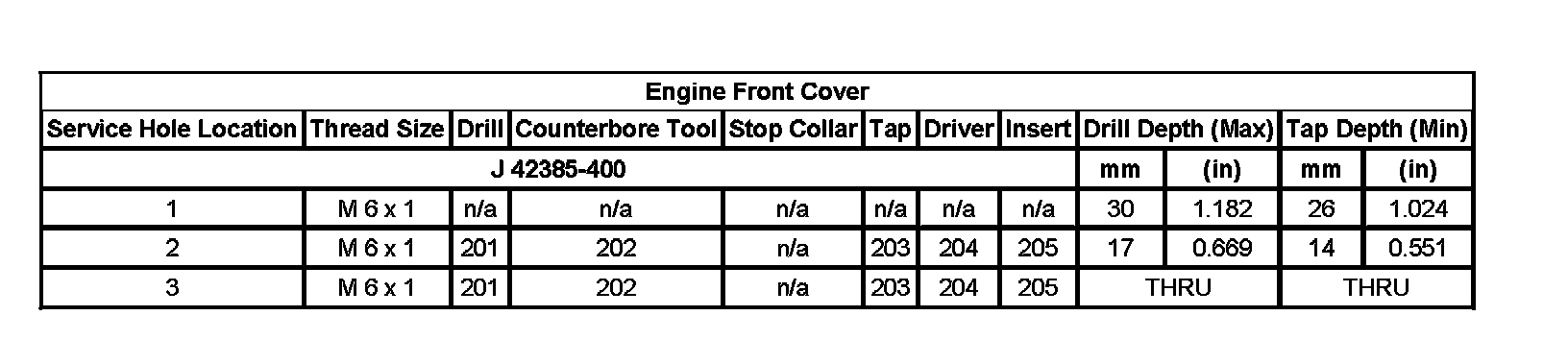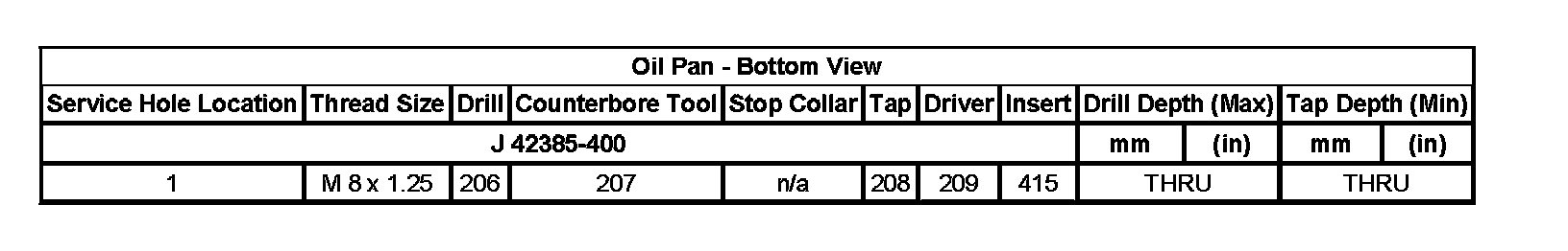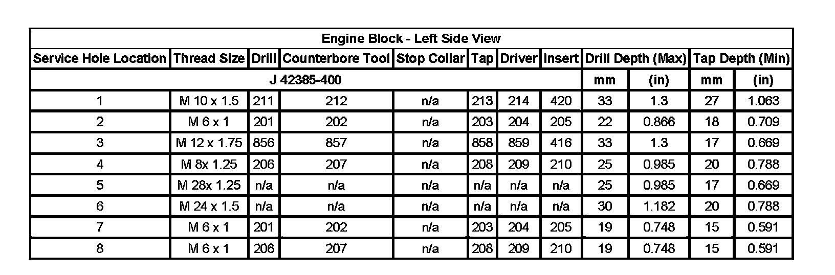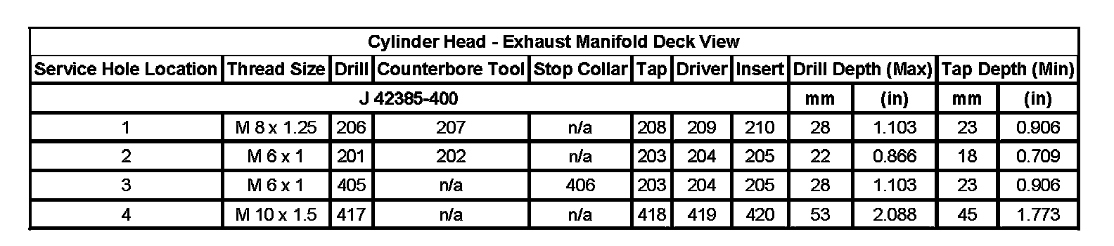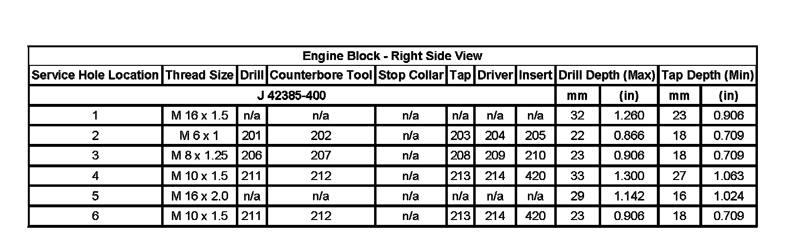 Thread Repair SpecificationsEngine Block - Top View: