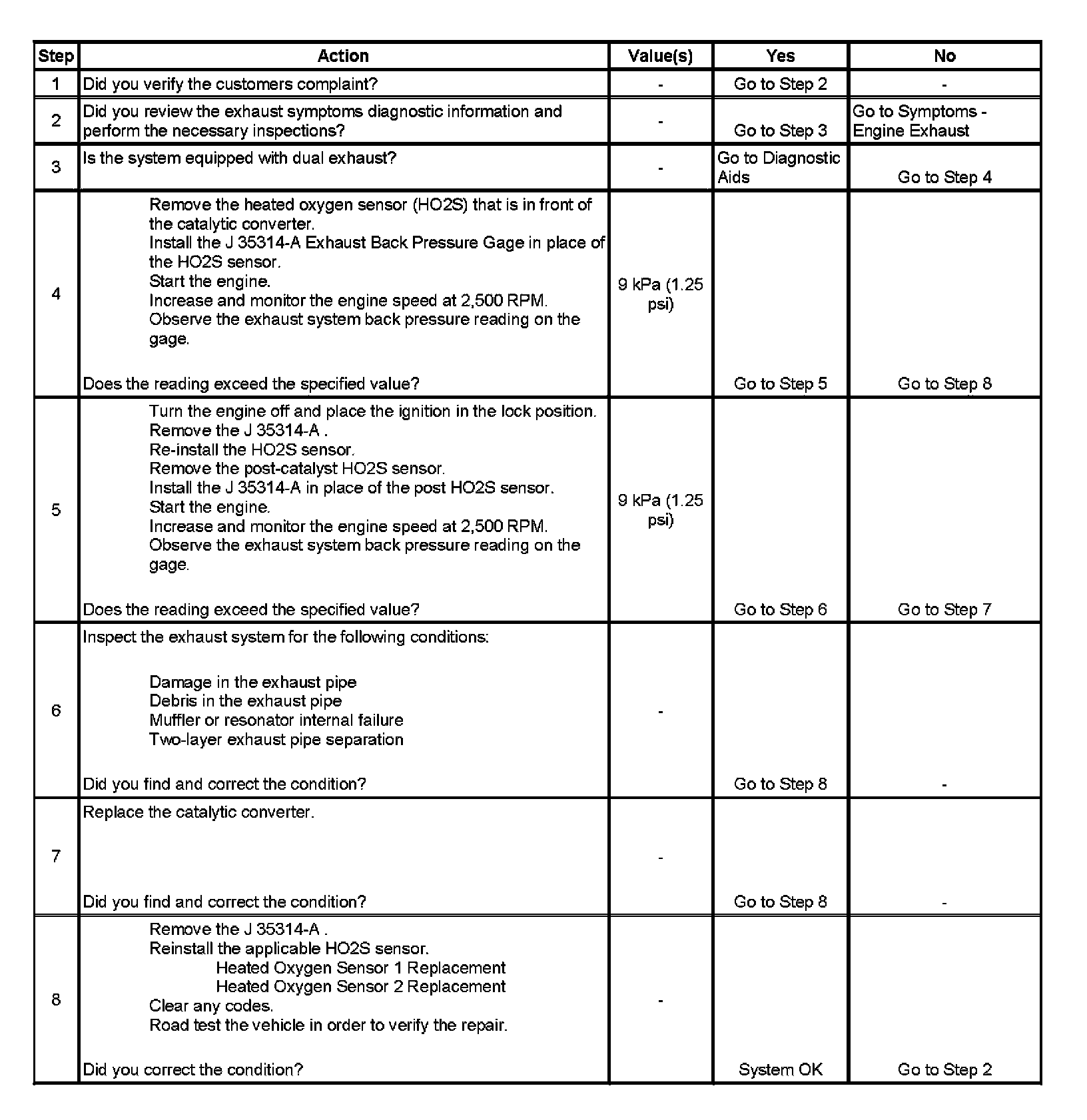 8. Confirming that the condition has been fixed is essential. If the symptom still exists and the vehicle has a dual exhaust system, proceed to step 2 and repeat diagnostic procedure on the opposite exhaust pipe.