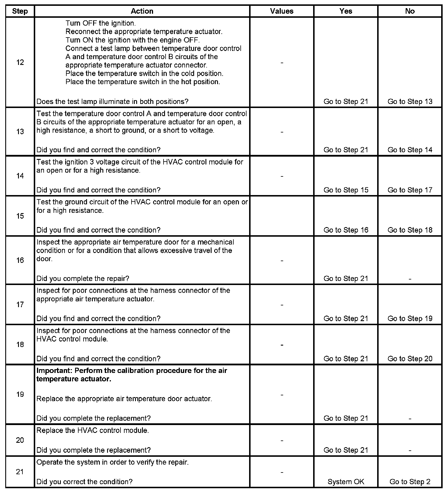 4. The HVAC control module is inoperative when the module does not respond to an operator control request.