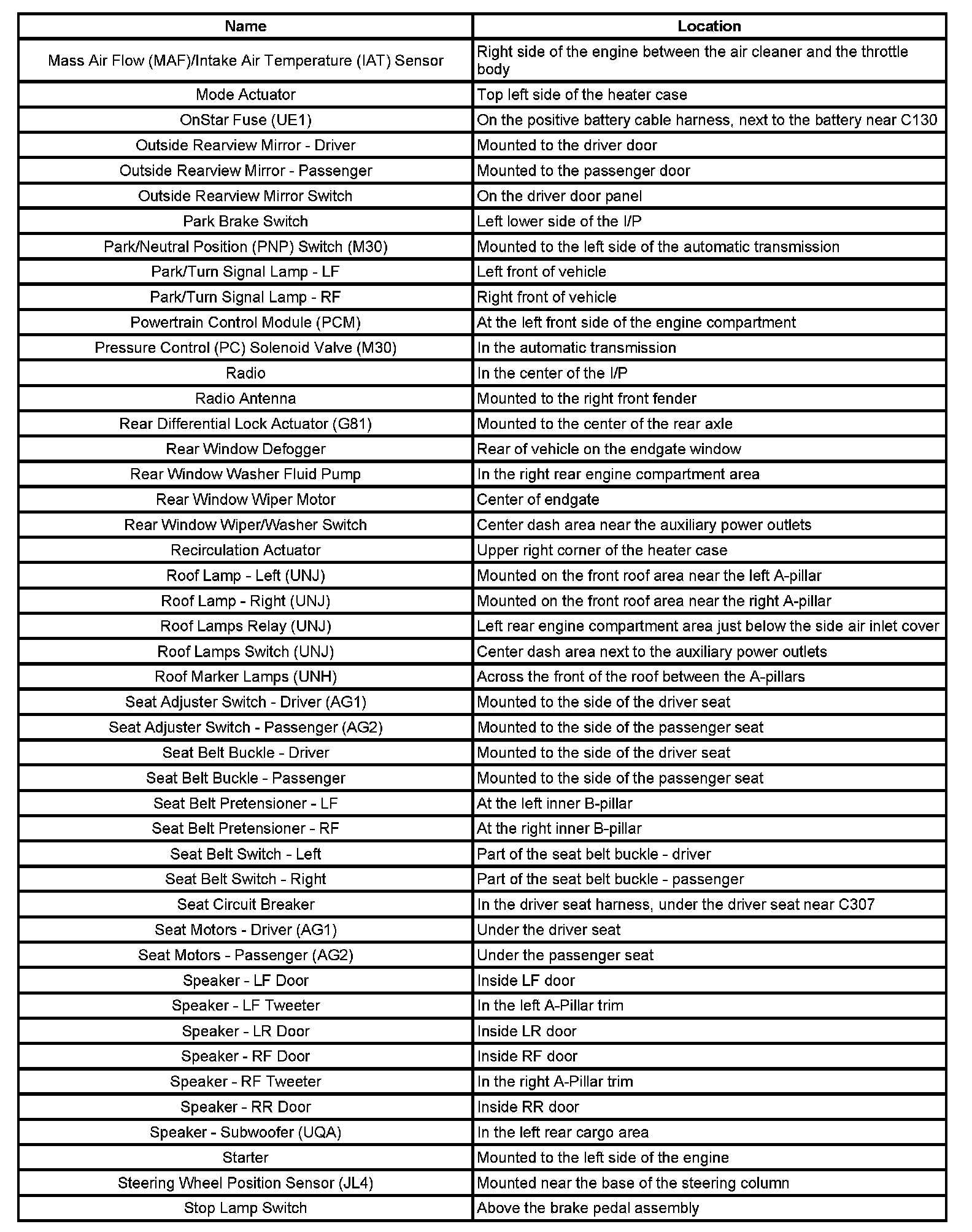 Component Locations