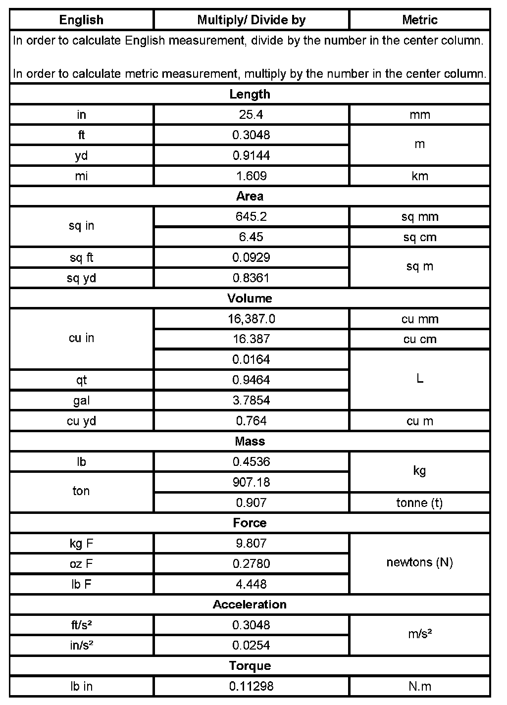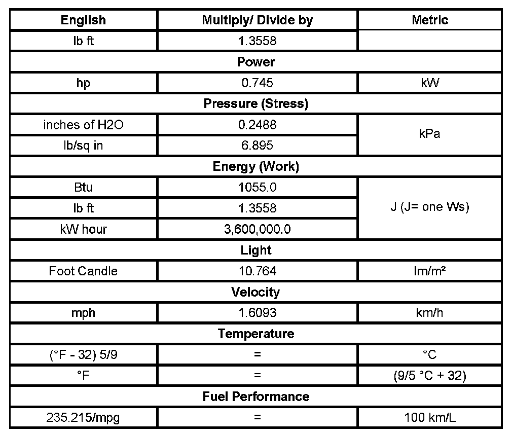 US English/Metric Conversion