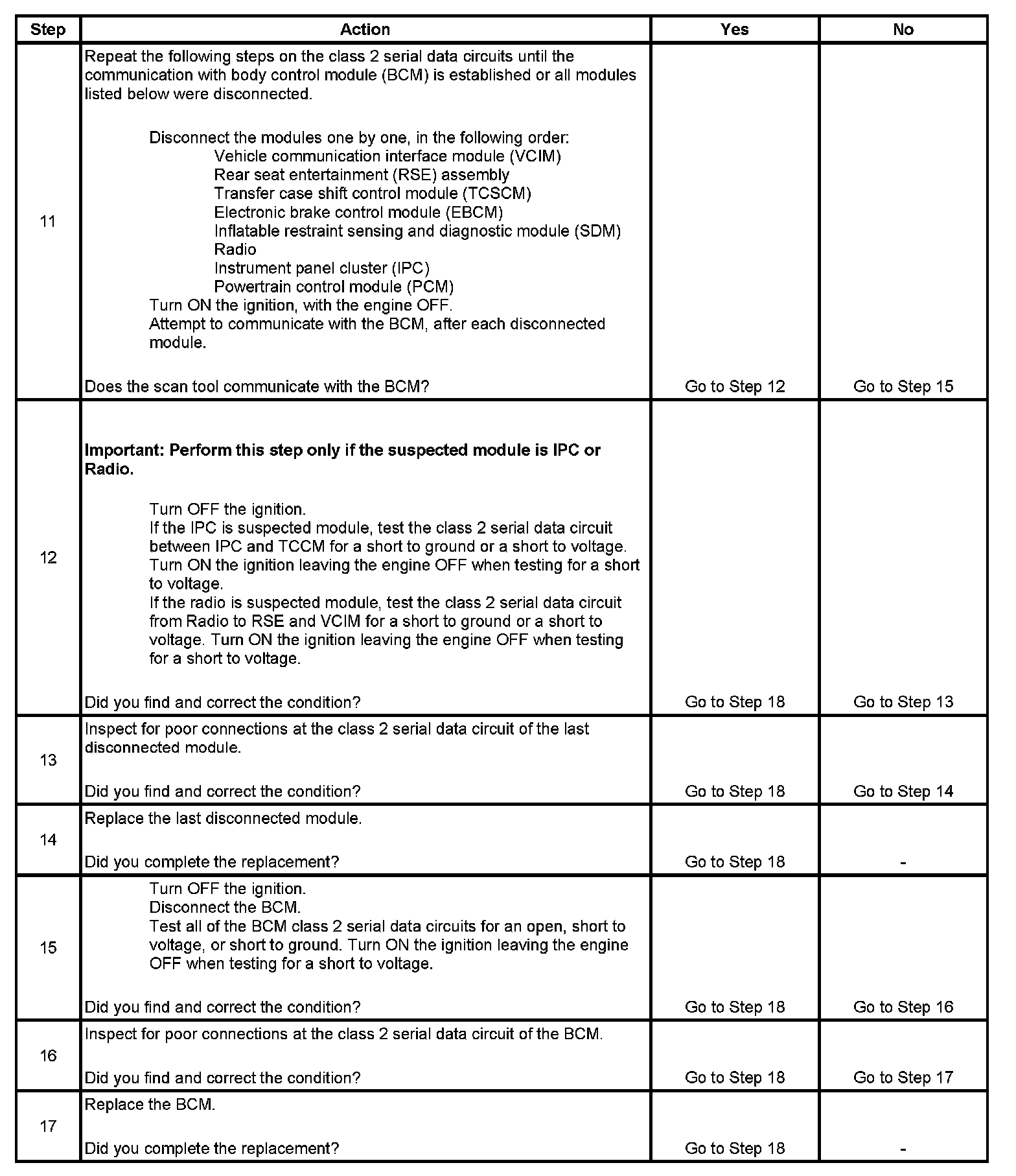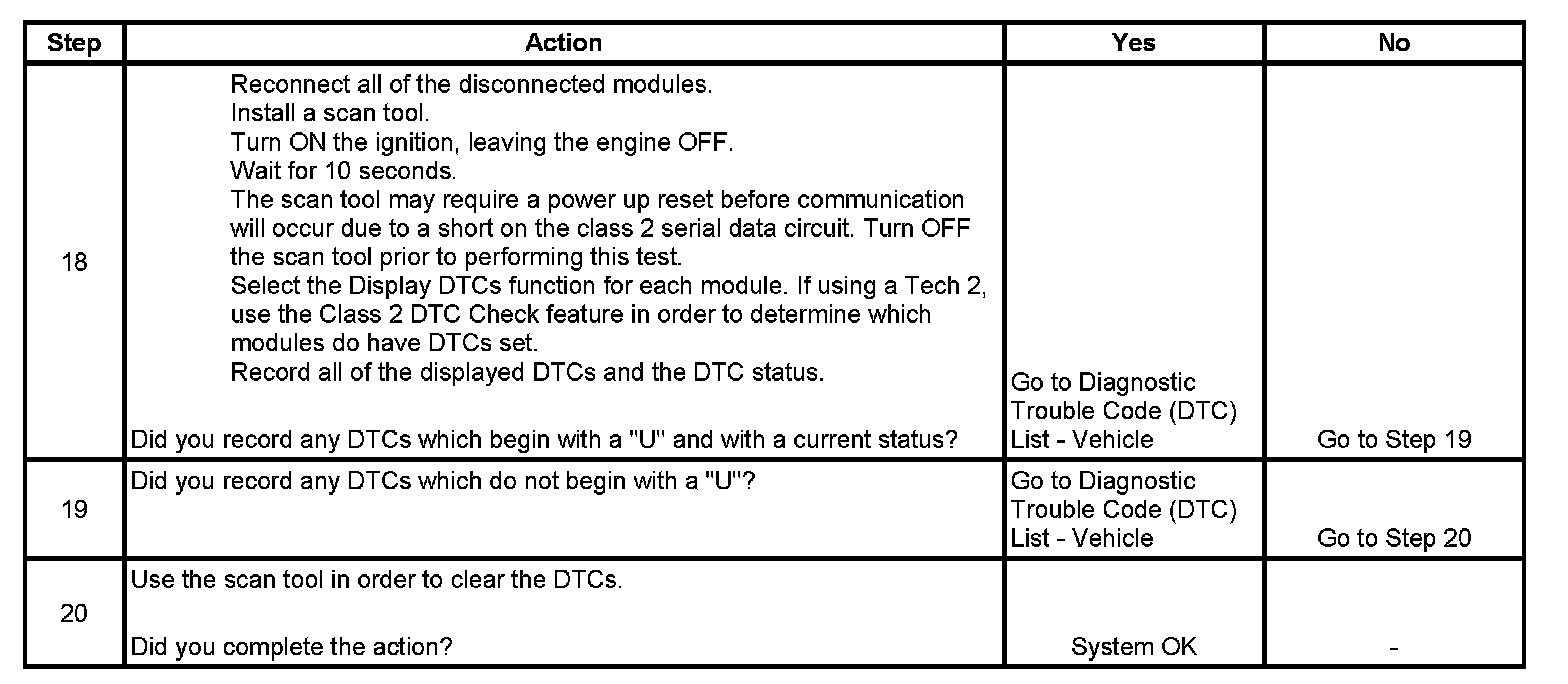 3. A partial malfunction in the class 2 serial data circuit uses a different procedure from a total malfunction of the class 2 serial data circuit. The following modules communicate on the class 2 serial data circuit: