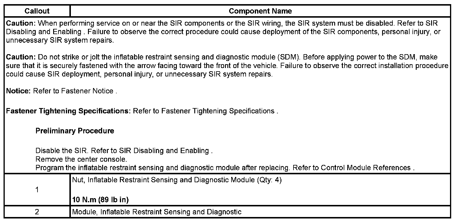 Inflatable Restraint Sensing and Diagnostic Module Replacement