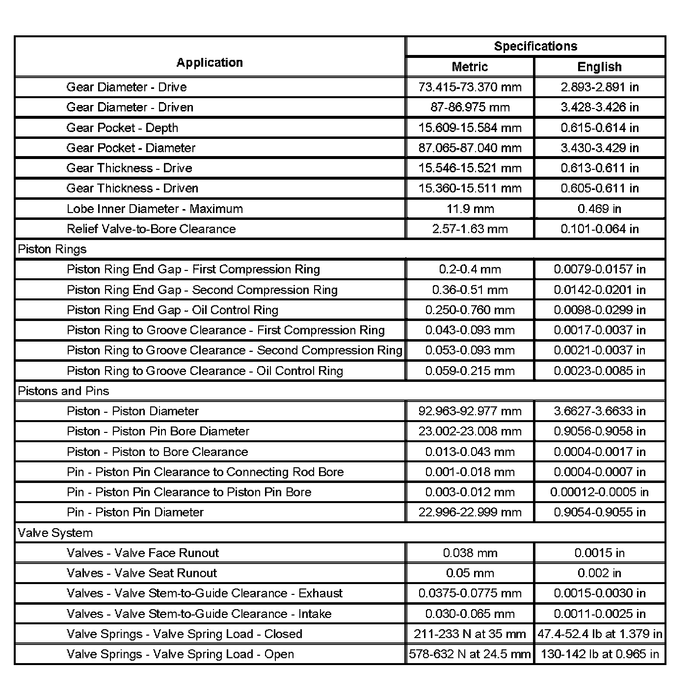 Engine Mechanical Specifications (Part 2):