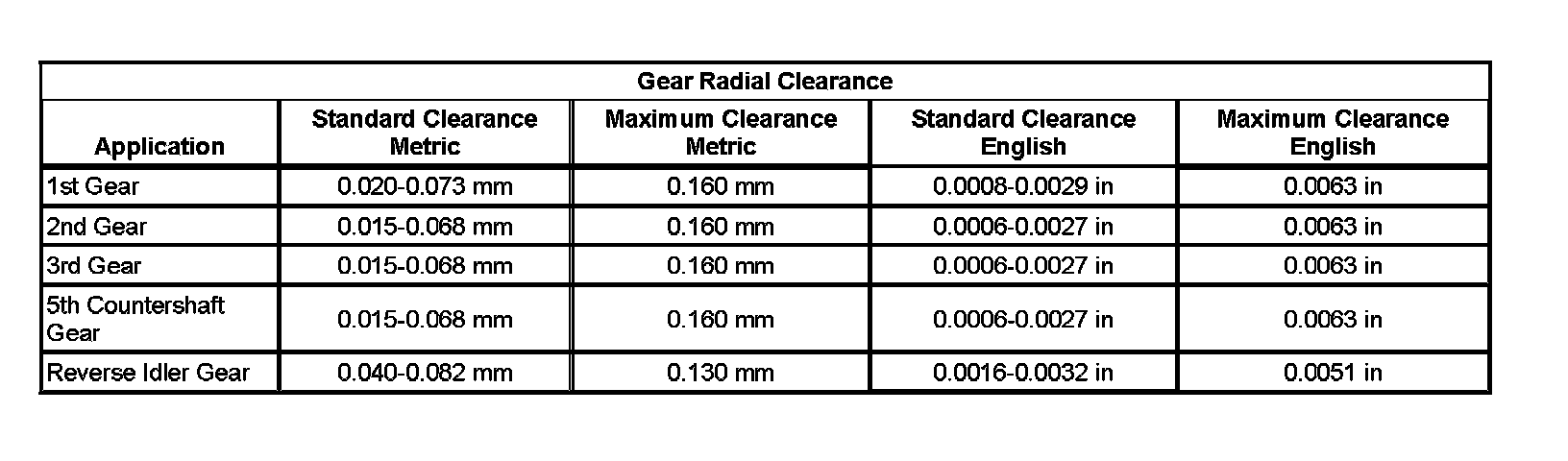 Transmission Clearance Specifications