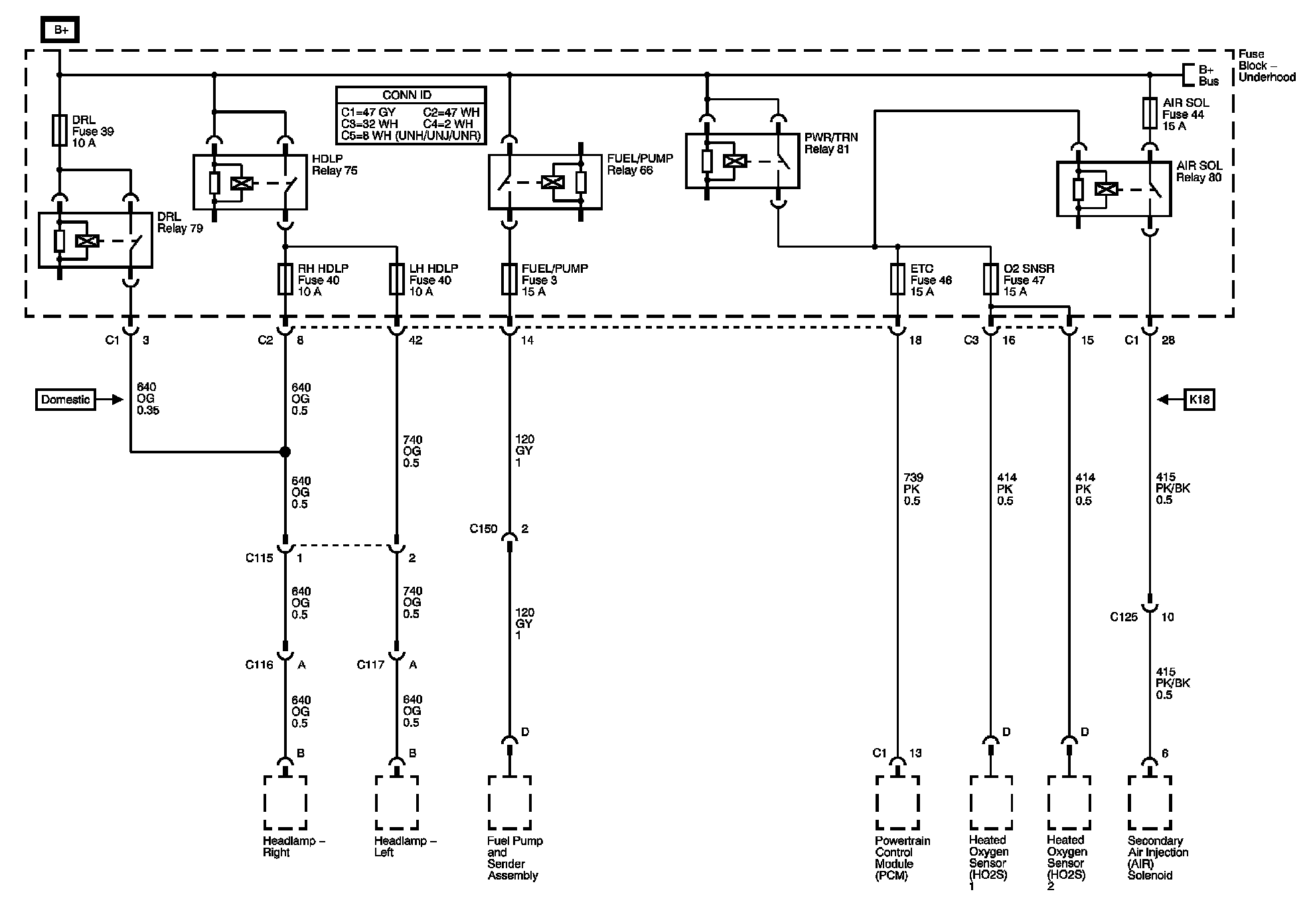 The locations for the Connectors, Grounds, Splices, and Grommets shown within these diagrams can be found via their numbers at Vehicle Locations.