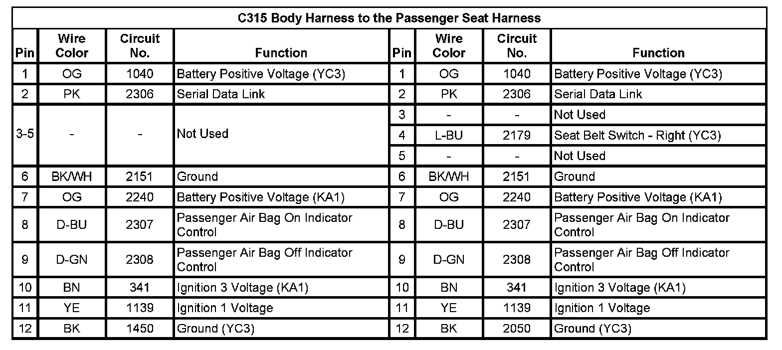 C315 Body Harness to the Passenger Seat Harness
