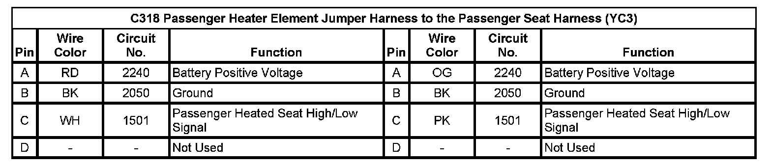 C318 Passenger Heater Element Jumper Harness to the Passenger Seat Harness (YC3)