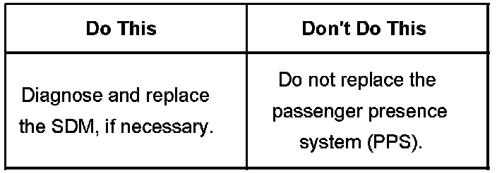 Airbag Light On, Passenger Airbag Status Indicator Reads Off, DTC B0092 Set (Diagnose and Replace SDM, if Necessary)