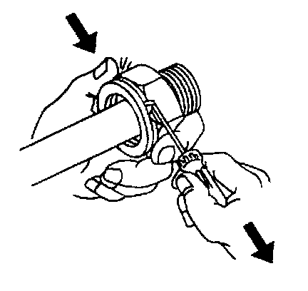 Important: Perform the following procedure when removing the retaining rings and cooler lines from the quick connect fittings located on the radiator and/or the transmission.