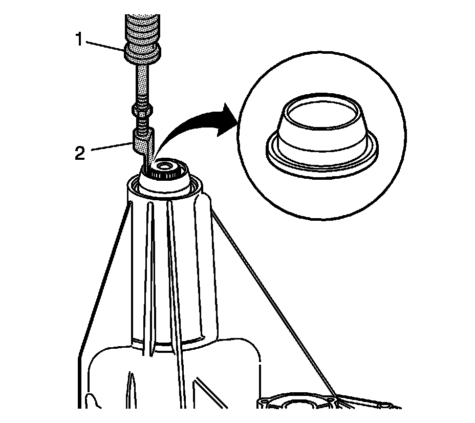 9. Using the J 2619-01 (1) and the J 45278 (2), remove the rear output shaft seal.