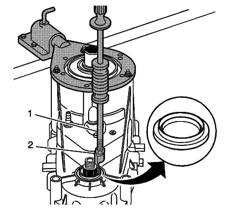 16. Using the J 6125-1B (1) and the J 23129 (2), remove the front output shaft seal.