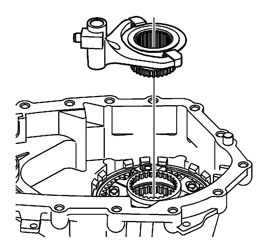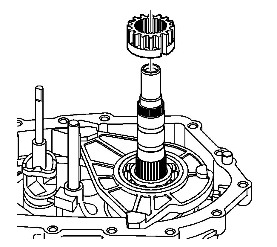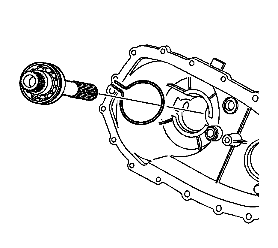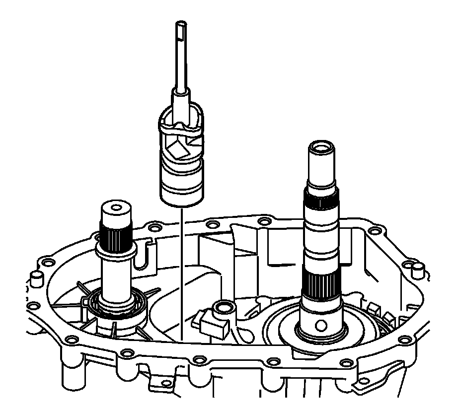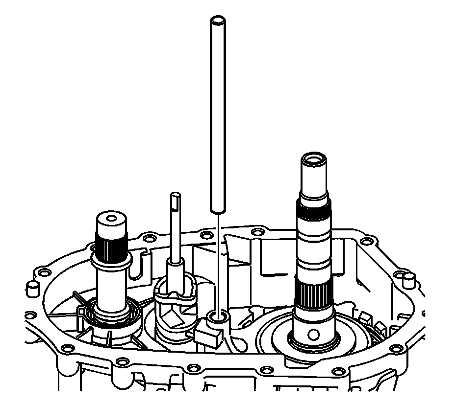 Notice: In order to prevent component damage, properly remove and install the shift cam and shaft assembly. When removing or installing the shift cam and shaft assembly, keep the shaft straight and do not tilt. Tilting the shift cam and shaft assembly in the transfer case housing will break the tip on the end of the shaft.