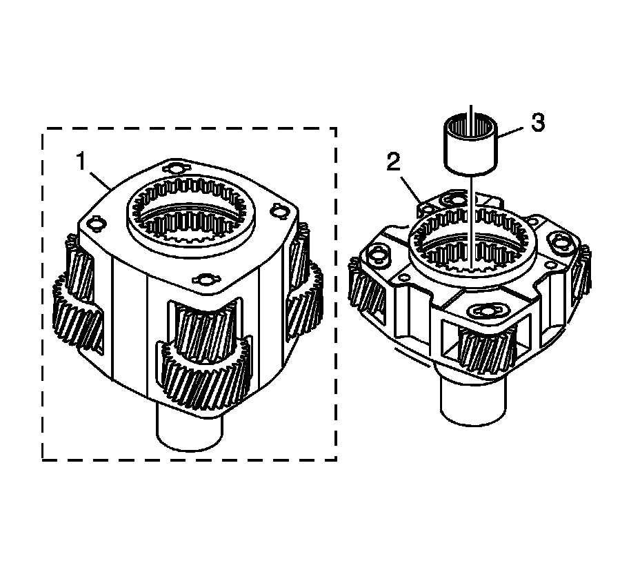 47. Using a brass drift and a hammer, remove the mainshaft front support bearing (3) from the planetary carrier assembly.