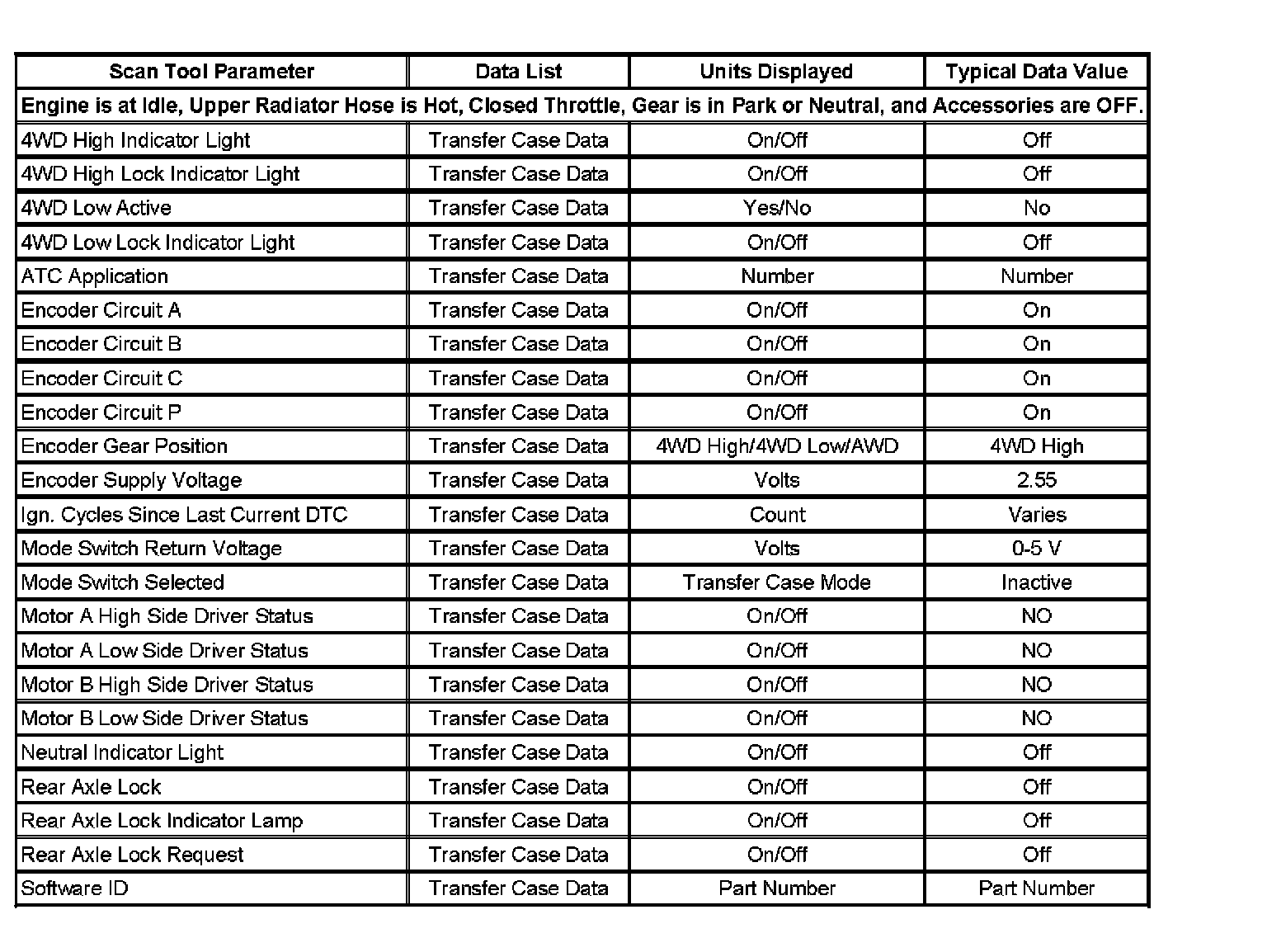 Scan Tool Data List: