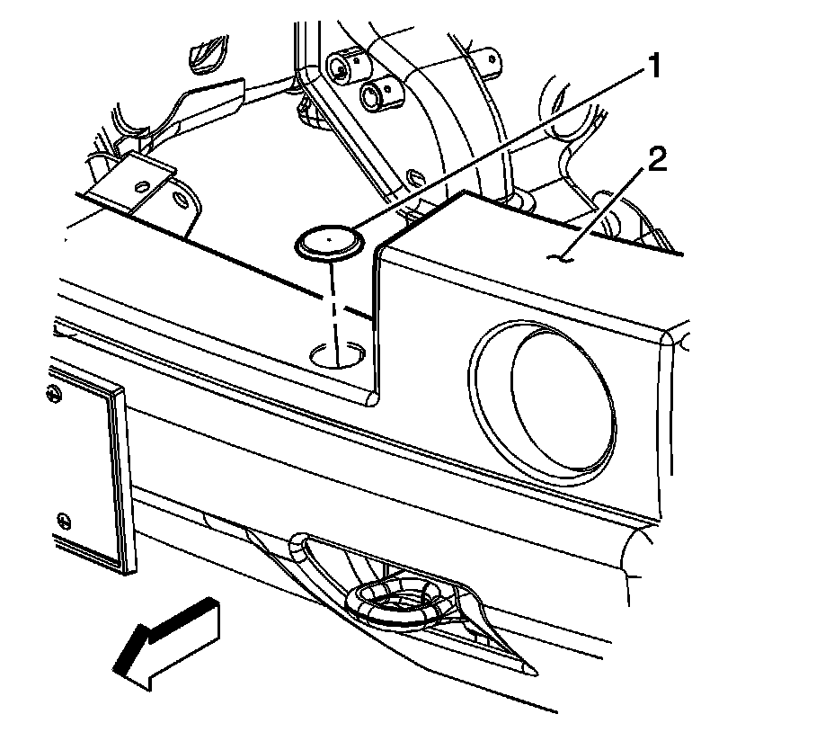 3. Remove the 2 plugs (1) from the front fascia (2).