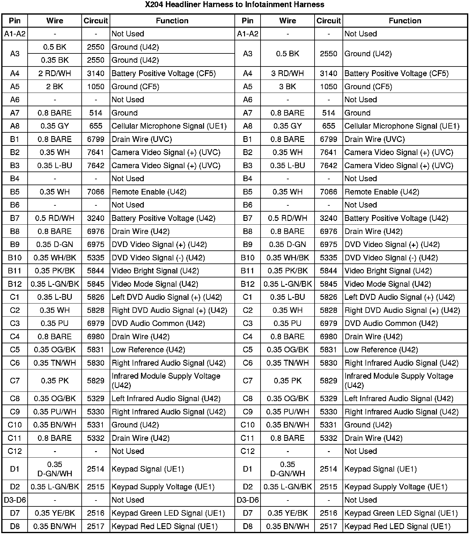 X204 Headliner Harness to Infotainment Harness