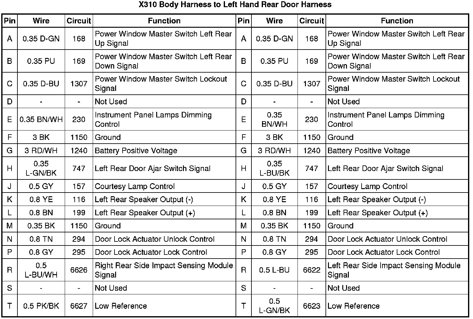 X310 Body Harness to Left Hand Rear Door Harness