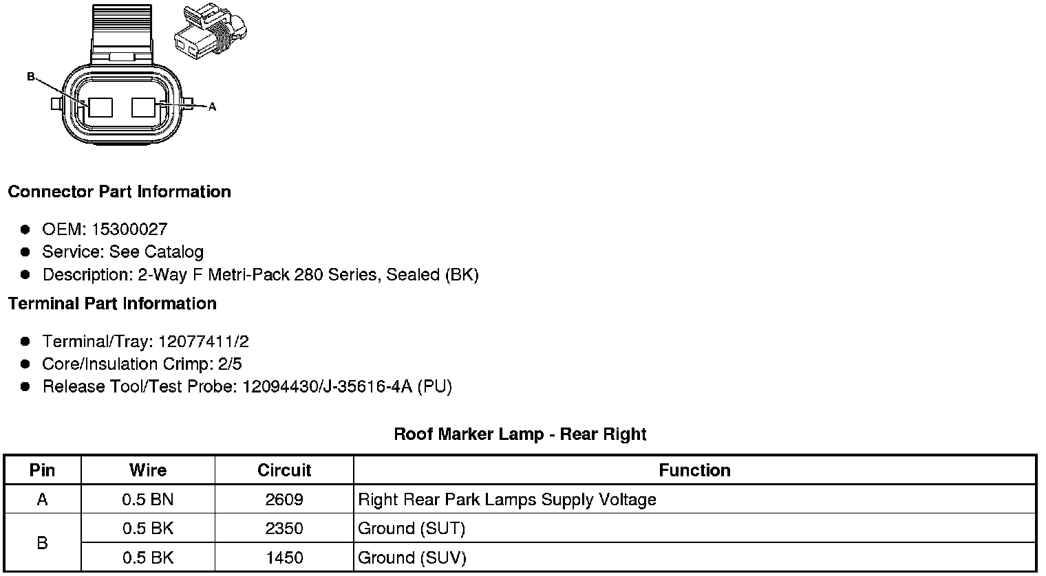 Roof Marker Lamp - Rear Right