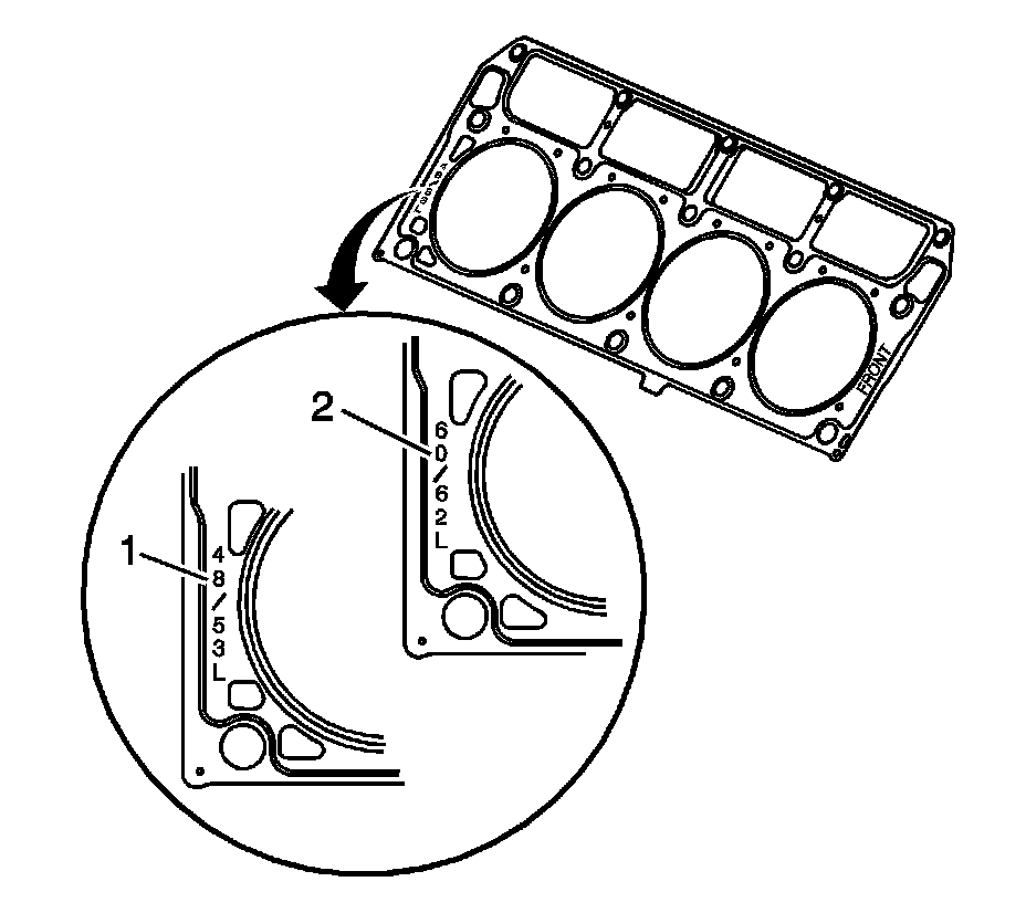 6. Inspect the displacement markings (1, 2) on the gasket, for proper usage.
