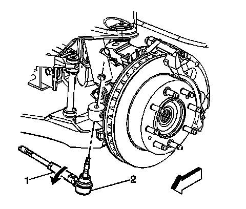 2. Rotate the inner tie rod (2) to the required toe specification setting. Refer to Wheel Alignment Specifications (Wheel Alignment Specifications) .