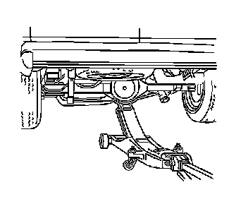 Caution: To avoid any vehicle damage, serious personal injury or death when major components are removed from the vehicle and the vehicle is supported by a hoist, support the vehicle with jack stands at the opposite end from which the components are being removed and strap the vehicle to the hoist.