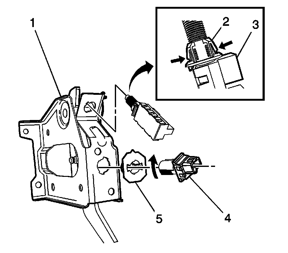 3. Push the locking tabs inward to release the retainer (5).