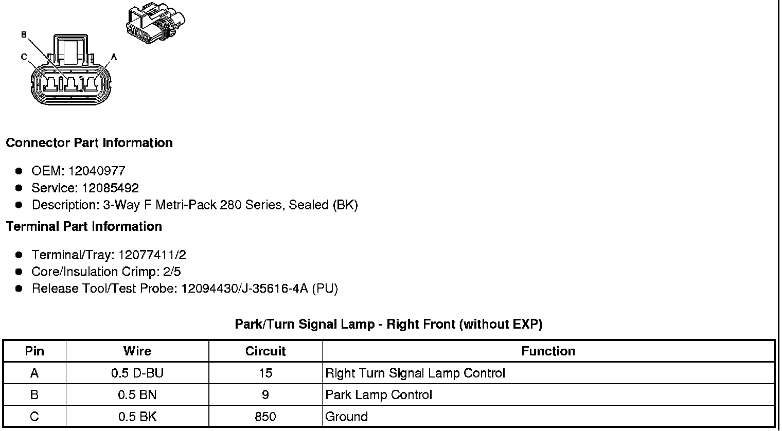 Park/Turn Signal Lamp - Right Front (without EXP)