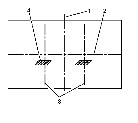 2. Measure from the center of the fog lamp to the ground line. Using this measurement, mark the horizontal centerline (2) of the fog lamp on the target screen directly in front of the vehicle.