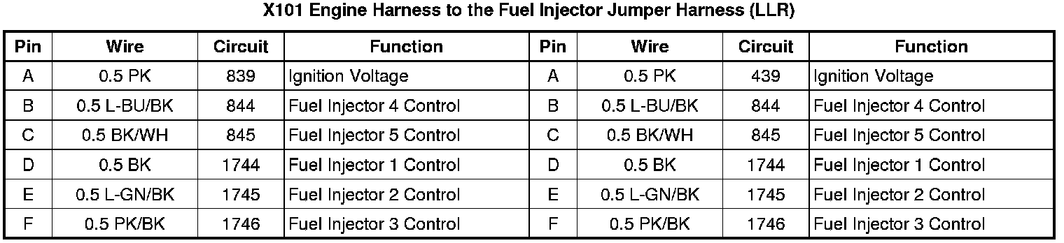 X101 Engine Harness to the Fuel Injector Jumper Harness (LLR)