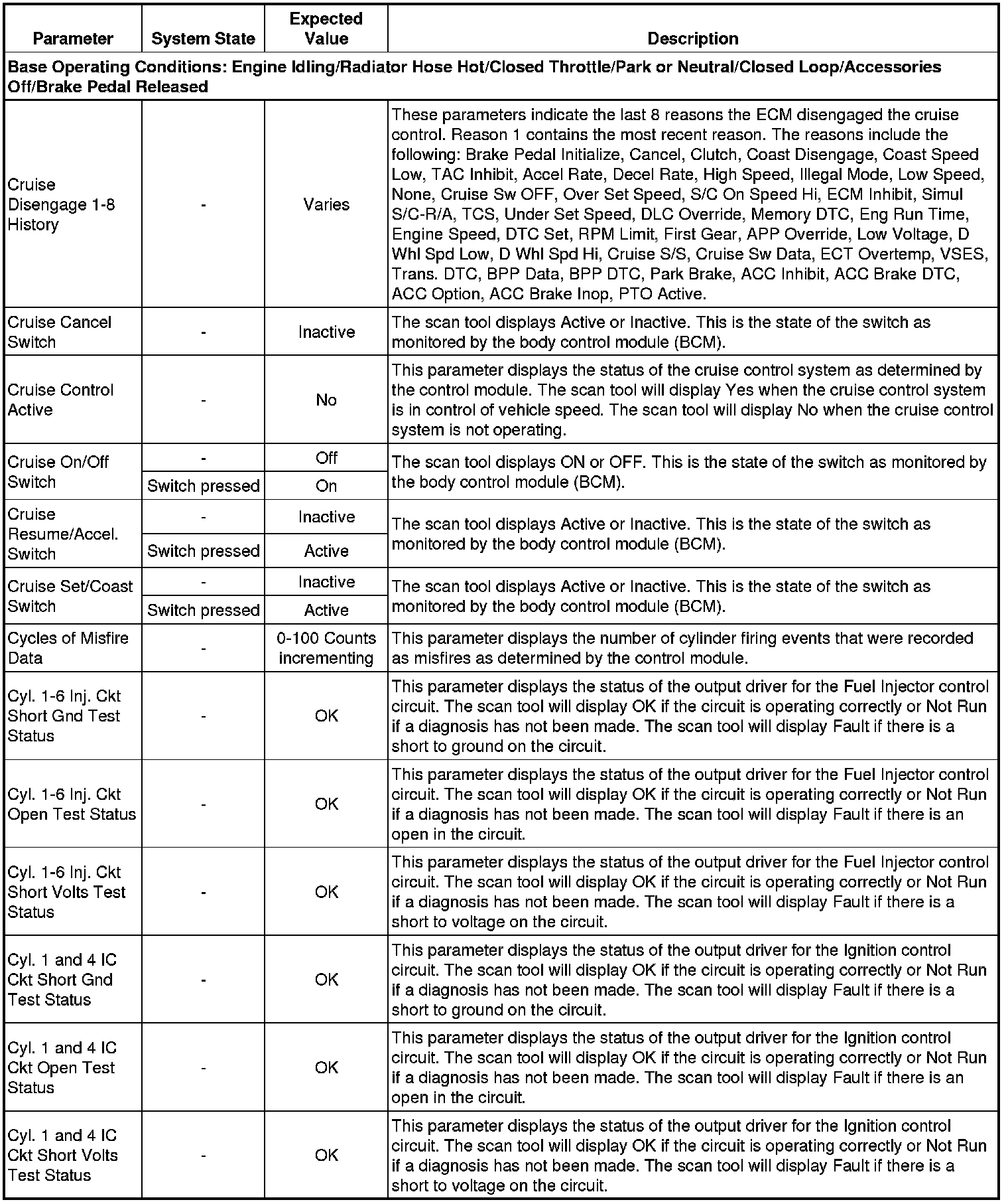 The Engine Control Module Scan Tool Data List contains all engine-related parameters that are available on the scan tool. The list is arranged in alphabetical order. A given parameter may appear in any one of the data lists, and in some cases may appear more than once, or in more than one data list in order to group certain related parameters together.