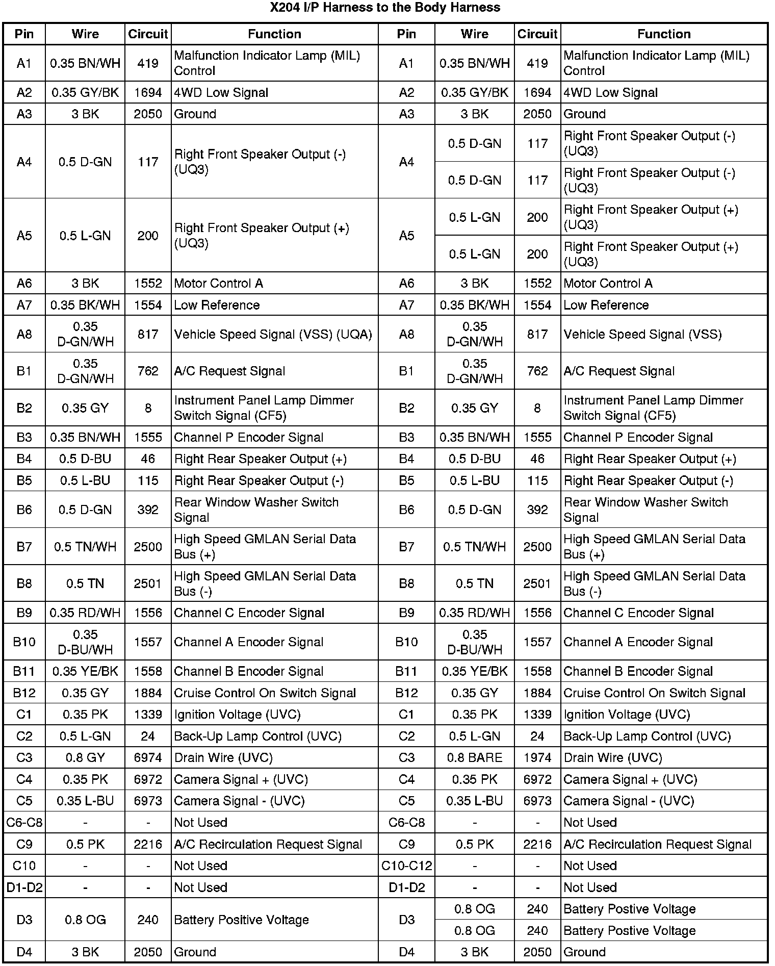 X204 I/P Harness to the Body Harness