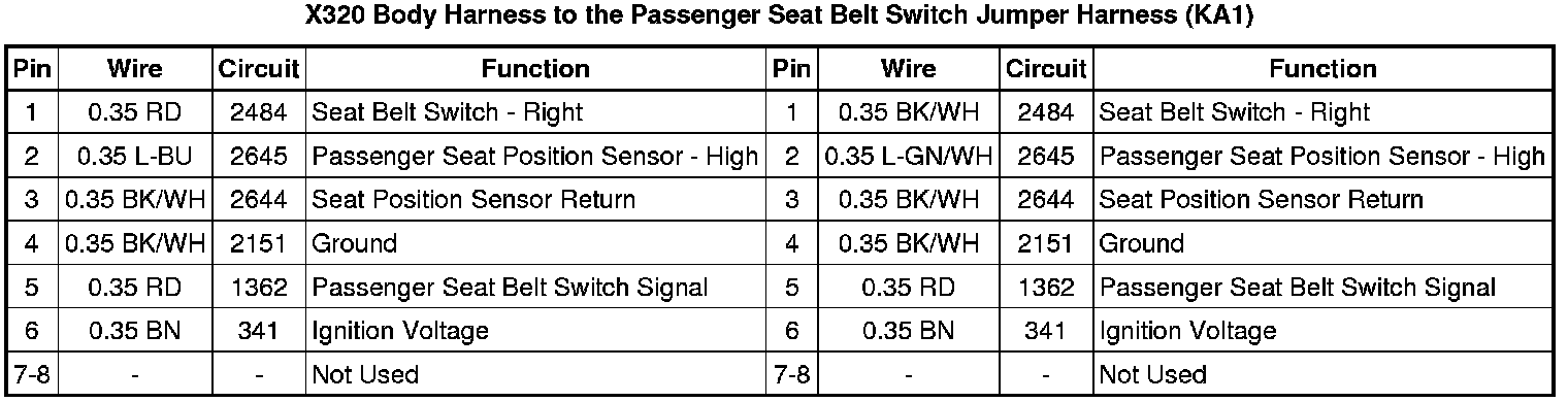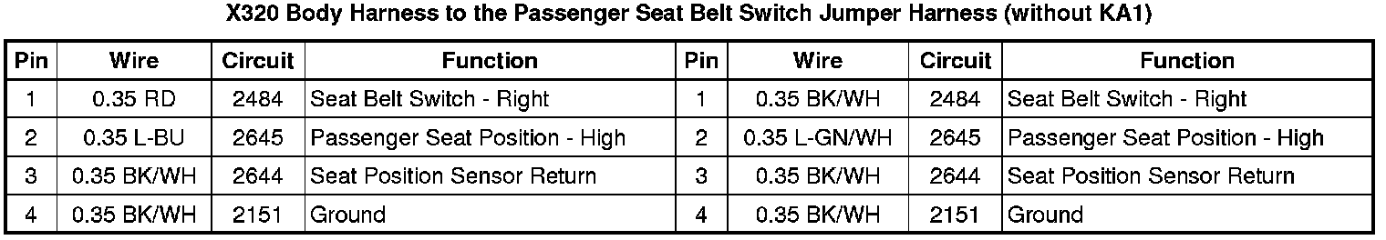 X320 Body Harness to the Passenger Seat Belt Switch Jumper Harness (KA1)