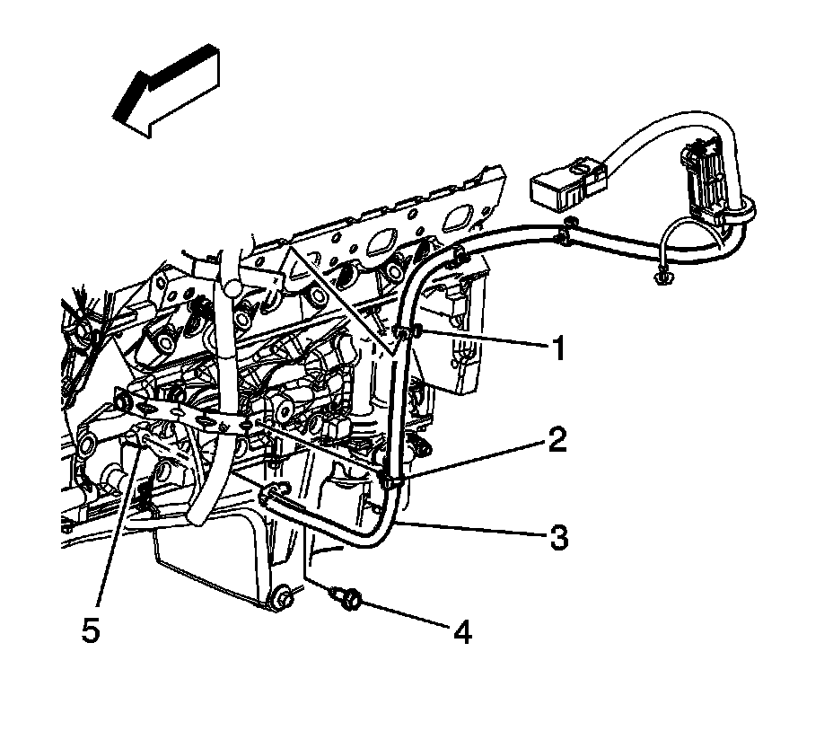 5. Ensure that the engine wiring harness ground terminal (5) is position against the engine block.