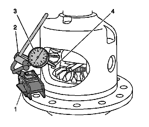 Important: If it is necessary to replace the left side gear, the right side gear, or the thrust washers, the entire differential must be adjusted. The differential is adjusted using selective thickness thrust washers between the side gears and the case and adjusting the pinion gear to side gear backlash.