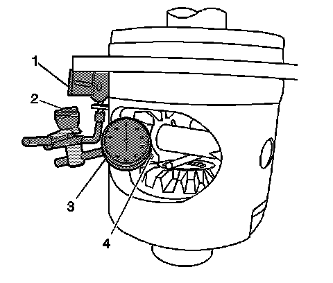 6. Place the contact pad of the J 7872-3 (4) onto one of the teeth of the pinion gear closest to the locking differential side gear.