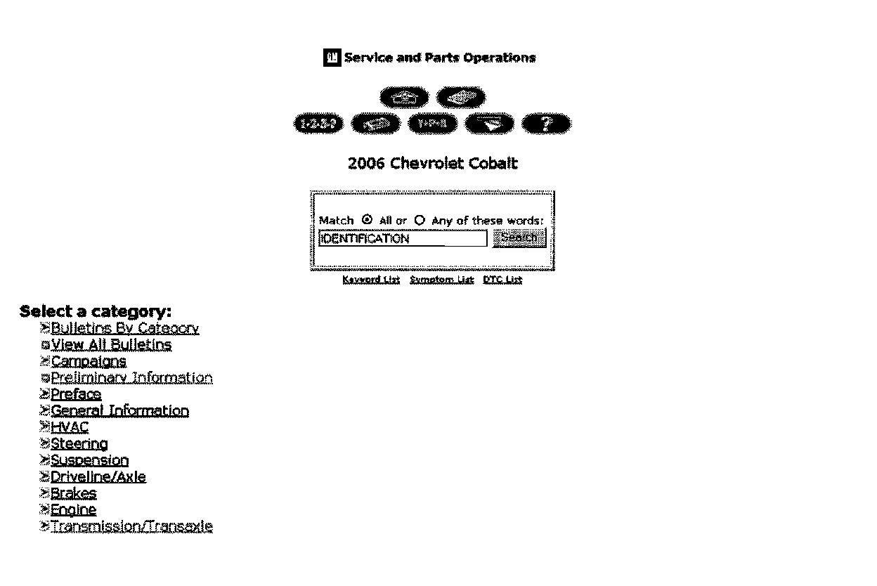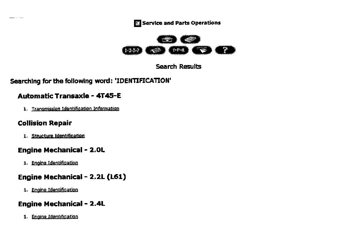 All original equipment identification information is available in SI. To easily find the information for the vehicle line you are working on, select the vehicle type and type the word "identification" in the search box. This search (described below) will provide the list of the different assemblies to choose from.